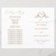 Welcome your guests with this elegant white and gold monogrammed wedding program with hand-drawn monogram modern handwritten calligraphy details. Ability to customize all areas to suit your needs. Design with a long text section on the back where you can add any text you like, from a long thank you message to timeline details or poem or song lyrics. Please feel free to use the "edit using design tool" button to access the editor tool and make changes to your text's position, font size, or style. NOTE: This program arrives flat and requires folding down the middle to assemble. The default value paper is recommended. For a clean fold, we suggest scoring paper with an inexpensive bone folder. The size refers to the program "before" it's folded, as it looks in the "front" preview image. Monogram and modern calligraphy details in faux gold foil, rest of text in golden hues. White "background-color" can change to any other color by editing using the designing tool. Part of our "Elegant Calligraphy Minimal Wedding Stationery Collection" with a variety of coordinating products available. Visit the entire collection at: https://www.zazzle.com/collections/elegant_calligraphy_minimalist_wedding_stationery-119497981924462546