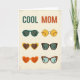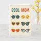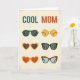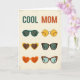 This greeting card features the words “COOL MOM” across the top, with “COOL” in deep teal and “MOM” in warm terracotta on a softly textured off‑white background. Below the headline, a neat grid displays six pairs of stylized glasses, arranged like a small gallery of fashion moments. The simple, flat shapes and minimal shading keep the look light and breezy, like a sunny day spent together ❤️. One pair shows dark green round frames, and another uses bright yellow circular lenses that feel like shared laughter in the sun. Two heart-shaped pairs—one yellow and one orange—add a sweet, affectionate wink without needing any characters at all 🌼. A rectangular dark brown pair with teal lenses sits alongside a cat-eye pair with a tortoiseshell pattern and pale blue lenses. The off‑white background has a gentle distressed texture behind the teal-and-terracotta title and the six evenly spaced eyewear illustrations.