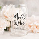 Chic wedding can glass featuring "Mr & Mrs" in a large elegant script and an illustration of two hearts joined together. Add your name and wedding date.