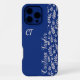 Chic Navy Blue & Blush Pink Leaf Pattern Monogram iPhone Case