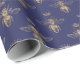 Chic Navy Blue Gold Queen Bee Pattern Wrapping Paper