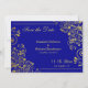 A chic design with faux gold swirls, flourishes and small flowers. On a bright navy blue background, this is a beautiful save the date card for your wedding. The offset diagonal text mimics the lines of the decorative side pattern. If you've decided on blue and gold as your main wedding colors, this is a perfect choice.