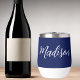 Chic Navy Blue Personalized Name in White Script Thermal Wine Tumbler