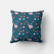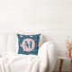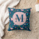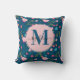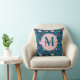 Chic Navy Blue Pink Butterfly Flower Monogram Throw Pillow