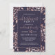 Chic Navy Blue Rose Gold Floral Leaves Christmas Invitation