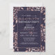 Chic Navy Blue Rose Gold Floral Leaves Quinceañera Invitation