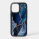 Chic Navy Blue Rose Gold Veins Agate Monogram Otterbox iPhone Case