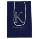 Chic Navy Blue Silver Monogram Name Medium Gift Bag