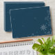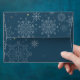 This stylish wintertime A7 card envelope has a navy blue background with an elegant whimsical soft white snowflakes design on the front and backside.
