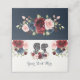Chic Navy Maroon Flower Bride Groom Silhouettes Place Card