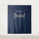A simple, modern, elegant, formal and classy bridal shower backdrop template featuring a textured navy background, a sprinkle of rhinestones (simulated, not real stones!), modern calligraphy script and typography in white. The word "Bridal", in modern script calligraphy, is covered in rhinestones. A chic, timeless design that combines traditional, formal wedding design with modern script calligraphy and a trendy layout.