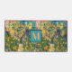 Chic orange blue turquoise sicilian citrus collage floral tiles monogram Desk Mat. Chic floral botanical citrus garden pattern inspired by the summer bright italian themed art of majolica. Beautiful Sicilian ceramic tiles in pink yellow and blue. A fun style bright design for home decor, clothes, mobile and Ipad cases, invitations and much more. You can change all text colors and fonts, click to customize further underneath the text customisation area this will take you into the design tool. A unique gift for birthdays, holidays and any special occasion. Whether for valentines day, Christmas or as a gift in general it makes a great gift idea