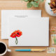 Custom wedding invitation envelope in white, with lovely graphics of two orange poppies, on the front, and a solid orange lining. Black text, on the back flap, is fully customizable to suit your needs. Lovely finishing touch to our poppy wedding invitations.