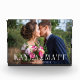 Elegant wedding photo block features your favorite horizontal or landscape oriented wedding photo. Your names appear in chic white block lettering as a text overlay with your wedding date beneath.