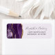 The left-hand edge of this elegant modern wedding invitation return address label features a purple watercolor agate border trimmed with faux gold glitter. The customizable text combines charcoal gray handwriting and copperplate fonts on a pale purple background.
