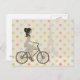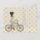 Chic and modern, personalized gifts and accessories with an elegant girl riding a bicycle with the Eiffel Towel in the background. Image bordered by multi-colored polka dot pattern.
