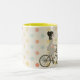 Chic and modern, personalized gifts and accessories with an elegant girl riding a bicycle with the Eiffel Towel in the background. Decorated with a multi-colored polka dot pattern.