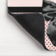 A chic pale Parisian pink and black polka dot mousepad with a girly black ribbon tied into a cute bow. Personalize this feminine light pink French inspired design by adding your name. Flat printed image, not actual bow.