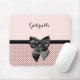 Chic Parisian Pink Polka Dots Black Bow and Name Mouse Pad