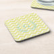 Chic Pastel Yellow Teal Chevron Custom Monogram Beverage Coaster