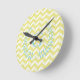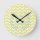 Chic Pastel Yellow Teal Chevron Custom Monogram Round Clock