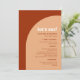 The Chic Peach Terracotta Arch Let's Eat Wedding Menu brings a warm and inviting touch to your reception tables, making guests feel instantly welcomed as they anticipate your carefully curated meal. Showcasing a graceful arch design in soft peach and earthy terracotta hues, paired with clean, modern typography and the friendly “Let’s Eat” headline, it blends relaxed bohemian charm with elegant simplicity. Its sunset-inspired palette creates a romantic yet cheerful atmosphere, perfectly suited for boho, rustic, garden, or destination weddings. Thoughtfully designed to coordinate with your wedding décor, this menu not only highlights your delicious food and drink selections but also doubles as a charming keepsake for guests, ensuring every detail of your celebration is filled with warmth, style, and personality.