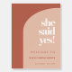She said yes: bridal shower welcome sign. Minimalist yet striking: adopt this slightly retro elegant typographic design for your Bridal shower stationery, with a modern arch design and terracotta & burnt orange colors. Fully customizable text, colors and backgrounds.