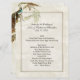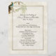 Lovely wedding reception table menus done in an antique inspired cream parchment, with graphics of a gold tone frame around the text area. A pea hen sitting on a wisteria branch, decorates the upper left corner of the menu, and artwork on the back shows the male and female peacock around graceful hanging wisteria. Text in black is ready to personalize with your wedding information and reception menu.