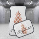 Personalize your ride with these trendy personalized car mats. They feature a stylized pineapple design in faux rose gold foil, with your name in elegant black script font.