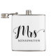 Chic Personalized Mrs Newlywed Typography Flask featuring stylish script and your custom text. Get one for the Mister, too!