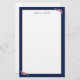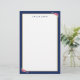 Elegant and chic blue bordered stationery paper with pink watercolor flowers.