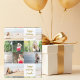 Elegant happy birthday wrapping paper with 5 photo collage next to your personalized message in gold script. Add your favorite five pictures of the birthday girl or guy for cute custom gifts.