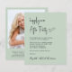 Budget-friendly sage green elopement or private wedding announcement and wedding reception invitation featuring "Happily Ever After Party" in a chic modern script, your invitation in classic serif typography and your names in a signature-like script. On the back, upload your photo and input your wedding website address to create a QR code that your guests can scan to RSVP online and obtain additional details.