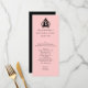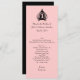 Long and skinny wedding table menu done in pink with elegant black silhouette style graphics of love birds in a bird cage. Personalize all the text to suit your wedding reception menu. Lovely addition to your wedding reception and matches our Chic Pink and Black Love Birds wedding collection.