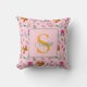 Chic Pink Bee and Floral Design Name & Monogram Throw Pillow