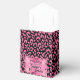 Pink and black leopard print pattern tent style favor boxes feature your thank you message on pink faux foil on the front in chic lettering and a ribbon closure. Beautiful for birthday party favor boxes and more. MATCHING items in our store.