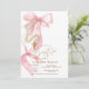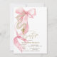 Chic Pink Bow Pearls Cross Baptism Invitation
