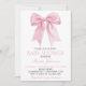 Plain white envelopes are included with paper invitations and will come to fit the invitation size you select. If you don’t need the envelopes, you may choose to not receive them by selecting the dropdown below "Envelopes" and choosing "None." If you’d like to have a design on your envelopes, you can browse all of these available envelopes to find the design that complements your Chic Pink Coquette Bow Baby Shower Invitation.