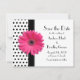 Classy, chic, and retro black and white polka dot pink gerbera daisy flower wedding save the date card.