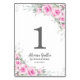 Chic Pink Floral Silver Quinceañera XV Sweet 16 Table Number