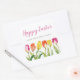 Chic Pink Floral Tulips Happy Easter Square Sticker