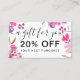 Floral watercolor gift discount card and a modern typography, with hand painted pink flowers with green and brown leaf and branches in a botanical bouquet arrangement. An elegant script calligraphy,