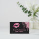 Modern chic lady's business card done in black with a pink glittery lip stick print and glittery paint dripping from the top right corner. Personalize the pink text to suit your business needs.