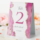 Chic Pink & Gold Glitter Agate Stone Wedding Reception Guest Table Tent Sign.