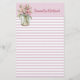 Pretty custom stationery, done in a pink and white lined pattern. A pink and white polka dot header is decorated with a colorful mason jar with pink lilies, on the left and dark pink custom text. Personalize the text to suit your needs. Makes a nice gift too.
