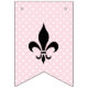 Ooh la la! Celebrate the future mrs with this chic pink Parisian wedding bridal shower bunting. Alternating pennants feature pink and white stripes and polka dots with elegant fleur-de-lis accents and bold black serif lettering for a playful French-inspired look. A stylish decoration for a Parisian themed bridal shower or bridal luncheon.