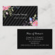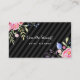 A beautiful pink peony floral and black diagonal stripes business card. This elegant feminine design is perfect for a wedding event planner, but can be editing with your personal information to create a card unique to your own business.