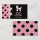 Cute mommy networking card done in a black background, on the right side, and a pink with black polka dots, on the left side and the back. Graphics of a pink and white gingham ribbon running vertical between the two backgrounds is decorated with a gingham bow. An adorable fluffy looking pink poodle decorates the top right side of the card, with custom pink text under it. Personalize this fun card as a great way to stay in touch with other moms for arranging parties, play dates, and baby sitting.