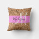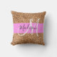 Chic and glam pink and pumpkin glitter sparkles white monogram name and initial throw pillow. Your custom name and monogram are written in an elegant hand lettered script with a pink background. You can change the text color and font style and size using the customize option. A perfect birthday or Christmas gift!