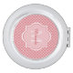 Add a sophisticated modern vibe to your personal style with this trendy pink and white quatrefoil pattern compact mirror with an elegant framed monogram. Personalize this stylish design by adding your name and monogrammed initial.